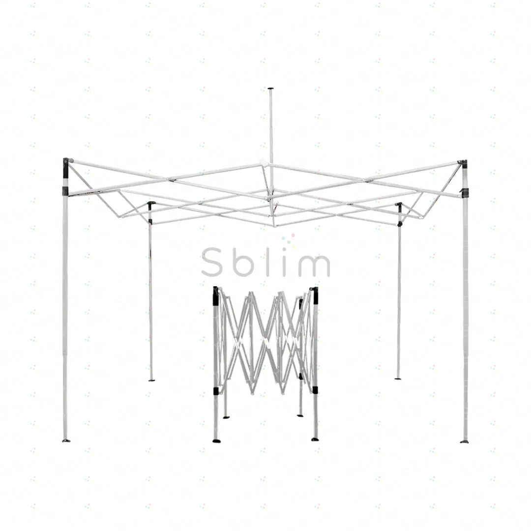 Estructura plegable resistente y fácil de armar, ideal para activaciones, ferias y eventos al aire libre.