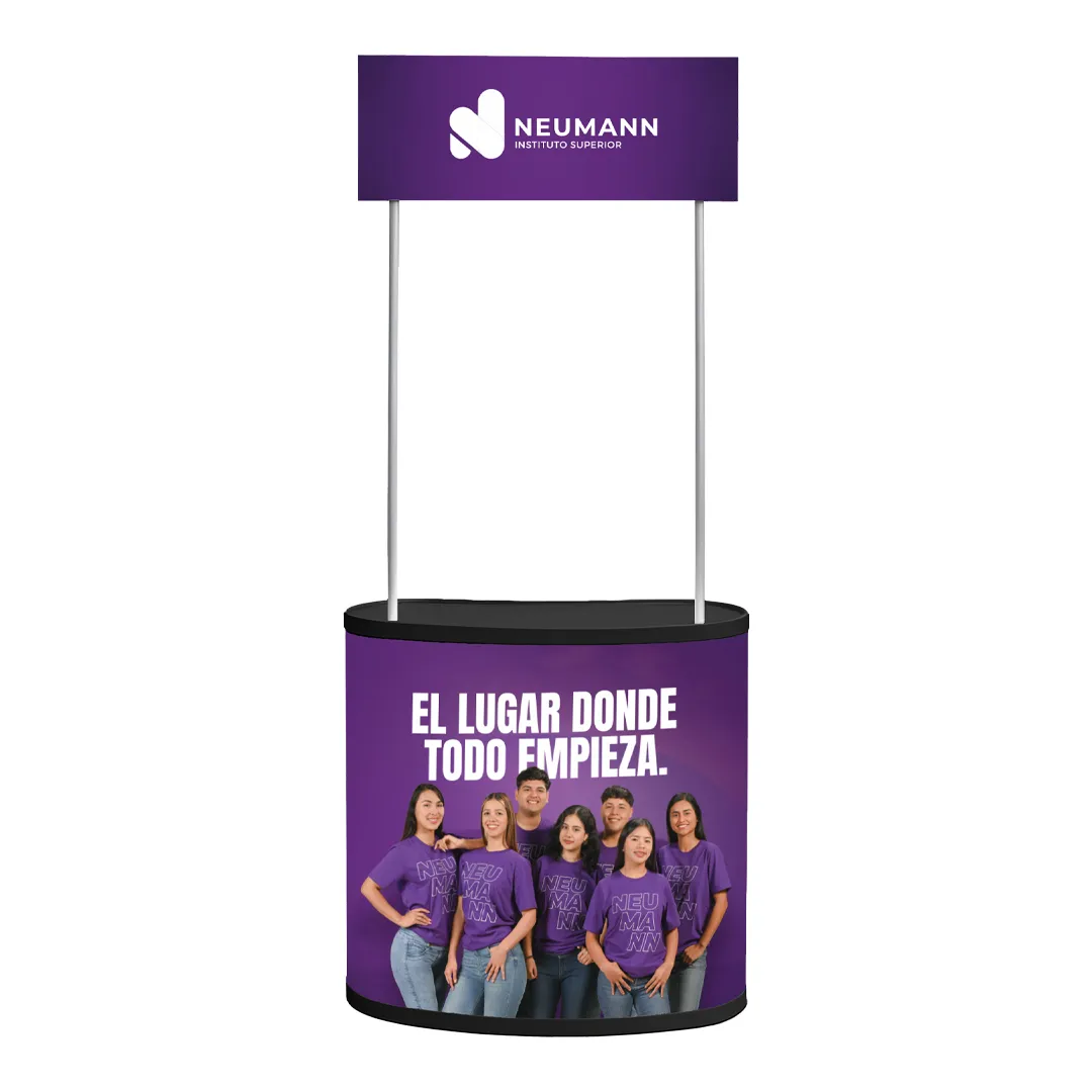 El Módulo Enrollable, también conocido como counter enrollable o mesa ovalada enrollable, es una solución versátil y elegante para tus activaciones, ferias o puntos de atención.